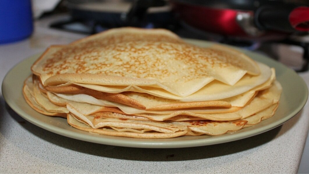 Блинчики Ингридиенты: 2 стакана тёплого молока 2 яйца 2 стакана муки Щепотка соли Щепотка соды 4 ст. л подсолнечное масла. 1 ст.л. сахара Приготовление: Смешать яйца,соль,сахар и соду,далее добавить 1 стакан теплого молока все перемешать. Далее всыпать муку тесто должно получиться консистенции густой сметаны все тщательно перемешаем. Далее понемногу вливаем 1 стакан молоко тёплого и размешиваем чтобы тесто можно было наливать на сковороду. Далее разогреваем сковороду, смазываем подсолнечным маслом и вливаем по 1й поварешки тесто развиваем по сковороде и выпекаем с 2х сторон. И блинчики готовы..Приятного аппетита.