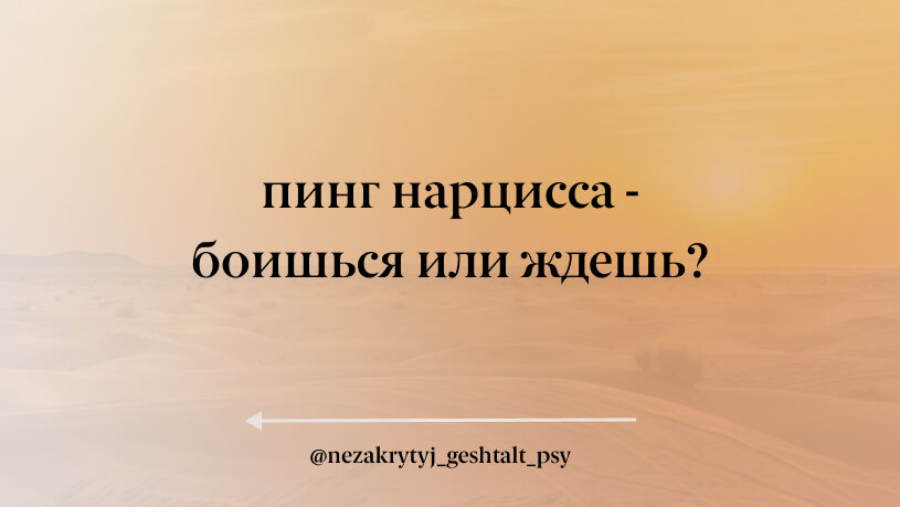 Пока все исследуют, какие бывают на вкус и цвет нарциссические пинги, я бы нашла интересным порассуждать, что происходит с вами в этой все теме. Вот где разворачивается настоящая душевная битва - тысячи форумов и веток обсуждений пингов, кто-то пишет, как прогнал нарцисса в шею, кто-то - что даже "не реагирование - тоже пинг"... И первого комментатора хочется поддержать, а от слов второго - растекается сладкая патока по сердцу, значит, все-таки пинг... Поставлю вопрос сразу и ребром - ждете или боитесь? И выдам сразу предположение - скорее всего, все сразу. Даже если это не хочется признавать, потому что, вроде как, получается, что вы противоречите сами себе. Но, как ни странно, это нормально. Просто в вас уже есть взрослая часть, которая как раз вас забрала из разрушающих отношений, которая уже может критически оценивать чужие действия и понимает, что не все люди залетают в поле с благими намерениями и действиями. А есть... та часть, которая успела привязаться к человеку, которая ка