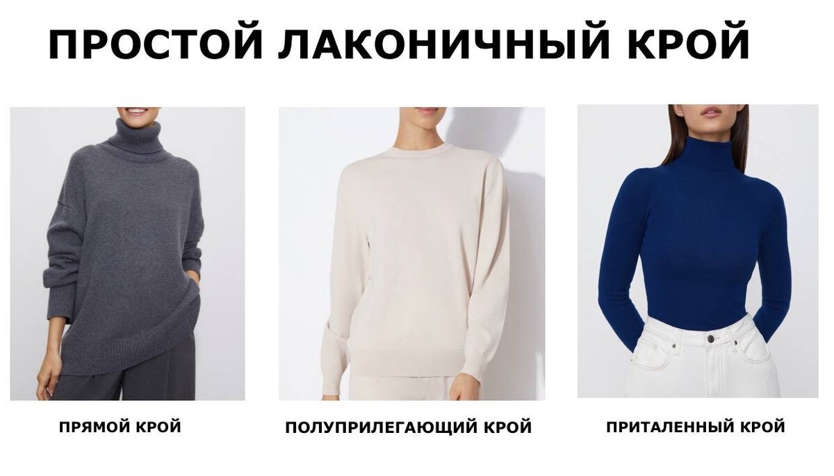 Сегодня я, Галина Буйкевич , расскажу вам характеристики современного базового гардероба. Ведь чтобы собрать базовый гардероб нужно научиться определять, какие вещи являются базовыми, а какие нет. 1. Простой лаконичный крой: силуэт может быть прямой, полуприлегающий и приталенный. Я не имею ничего против приталенных силуэтов, но для того, чтобы носить их современно, их нужно сочетать со свободными вещами, т.е. если вы выбрали приталенную водолазку, то сочетайте ее с прямыми или широкими брюками/джинсами. А если выбираете узкие брюки, то их сочетайте со свободным прямого кроя свитером. 2. Нейтральный дизайн: минимум деталей и отделки. Базовые вещи должны быть без лишних деталей и украшательств, дополнительного декора, аппликаций. Например, базовые джинсы должны быть однородной варки, без потертостей и выбелений, без декора и разрезов. 3. Чем меньше деталей, тем более универсальной становится ваша вещь! Универсальность - это следующая характеристика. Ключевая особенность базовых вещ