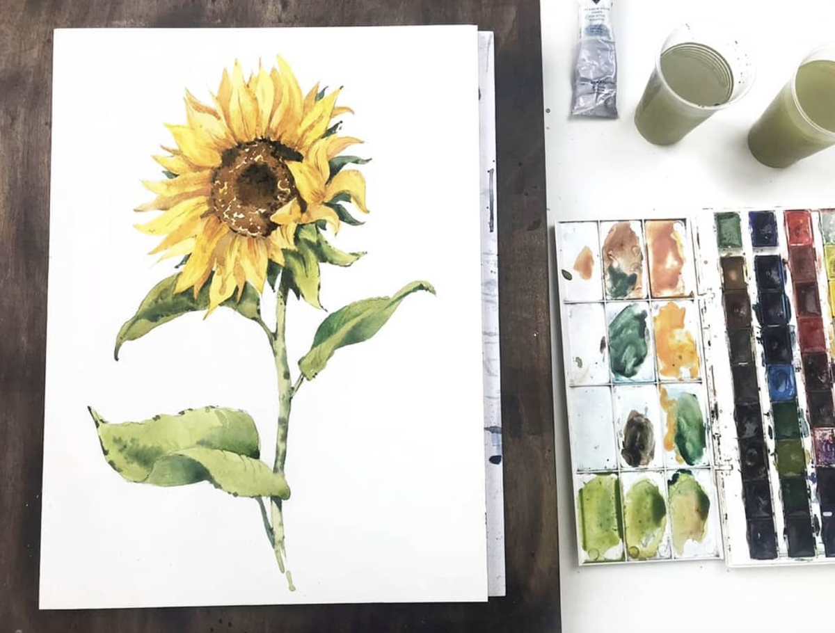 Подсолнух излучает позитив, поднимает настроение и приносит радость, но что делать если до поля далеко или не то время года? Предлагаем нарисовать солнечный цветок самостоятельно! А сделать это можно на удивление быстро. Следуйте пошаговой инструкции ниже, чтобы получить свою порцию позитива в виде яркой акварельной зарисовки! Что получится в результате: Что вам понадобится: — набор акварели ;