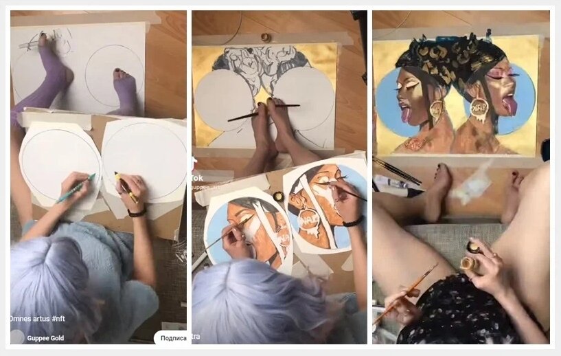 В одной из статей показывал, как девушка рисует ногами и руками одновременно 4 разные части одного рисунка. Затем все соединяет и получается одна картина.