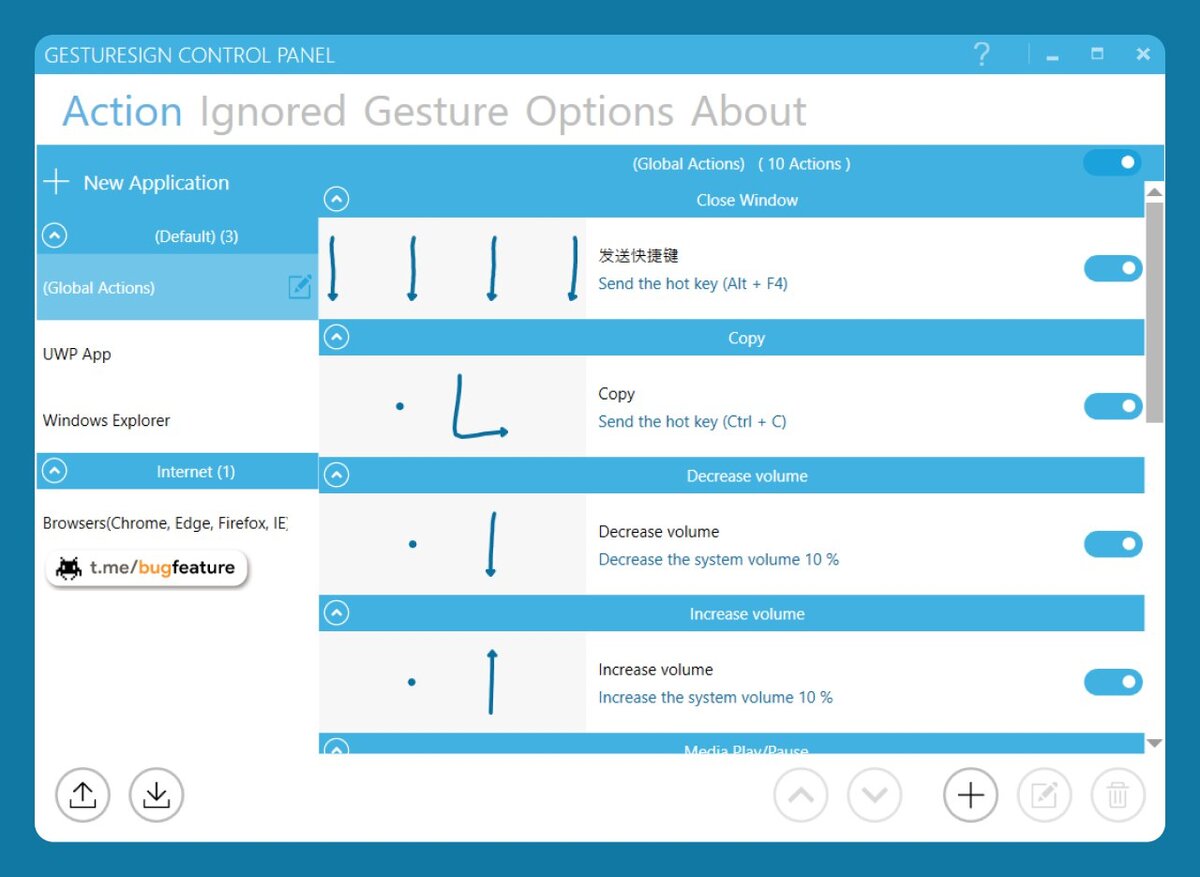 Пользователям Windows 10 уже «из коробки» доступна поддержка жестов для выполнения некоторых операций. GestureSign (https://apps.microsoft.com/store/detail/gesturesign/9N45WQVK2QQW?hl=en-us&gl=us) открывает перед поклонниками этой технологии управления компьютером гораздо больше возможностей. Программа предлагает автоматизировать выполнение рутинных операций с системой и приложениями при помощи настраиваемых жестов для мыши, тачпада или сенсорного экрана. С её помощью можно запускать приложения и управлять их окнами, изменять уровень громкости звука и яркости экрана. Поддерживается открытие файлов и веб-сайтов, выполнение команд в консоли, имитация выполнения действий мышью и клавишами клавиатуры. В комплекте с программой поставляется несколько готовых, настроенных жестов, которые при желании можно отредактировать или дополнить собственными. В случае с сенсорными жестами GestureSign может распознавать до десяти одновременных касаний. Опционально жесты могут дополняться нажатием горячи