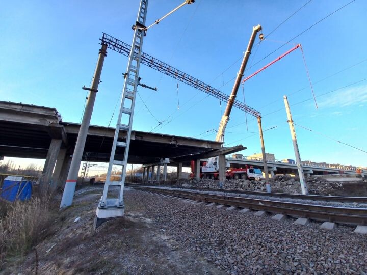 Снос старого виадука на улице Остужева заканчивается. Рабочие уже разбирают пролёт над железнодорожными путями. Об этом редакции «МОЁ! Online» сообщил читатель. Разбирают пролёт над путями сегодня, 15 ноября. По мнению народного корреспондента, много времени это не займёт. — Строители заранее полностью убрали на мосту верхний слой — асфальт, бетон, гравий. Теперь подогнали огромный кран — он может поднять такие тяжёлые балки, из которых состоит пролёт, — рассказывает наш читатель. Сейчас кроме пролёта над путями остаются неразобранными ещё четыре пролёта со стороны улицы Минской. А ту часть моста, что идёт в сторону Ленинского проспекта, уже полностью разобрали. — Кран там не применялся, всё молотом автоматическим разбили и вывезли. Уже началась подготовка к установке опорных колонн под новый мост. Старый мост на улице Остужева начали разрушать 30 сентября. Закончить строительство нового виадука на его месте планируют к сентябрю следующего года. В результате появятся два одинаковых пут