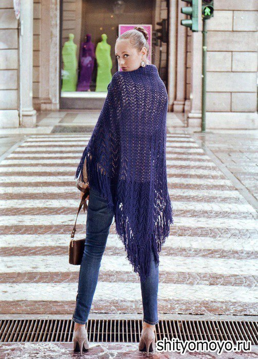 Шаль "Синяя птица". Описание, спицы, схема.