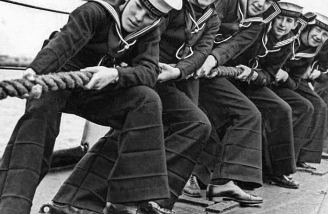 Военно-морской флот является родиной этого предмета одежды - брюк из парусины. С первого дня своего появления и до сегодняшнего дня они являются неотъемлемой частью наряда каждого моряка. Но откуда взялся этот предмет одежды, как он попал на флот и почему именно туда? Брюки больших размеров появились во времена мореплавания, когда корабли ходили не благодаря работе бездушных промышленных машин, а благодаря силе обычного ветра. Первое официальное упоминание об этой модели брюк относится к 1810 году среди американских моряков. Такая одежда появилась не случайно, а из сугубо практической необходимости. Брюки имеют очень приятный крой и не доставляют неудобств при выполнении различных видов работ. Их можно сворачивать по мере необходимости, а затем сразу же разворачивать. Кроме того, у них была еще одна особенность. Работа моряка всегда связана с риском, например, падение в воду. Обычная одежда сразу же намокала и становилась тяжелой ношей для моряка, увлекая его на дно. Благодаря кл