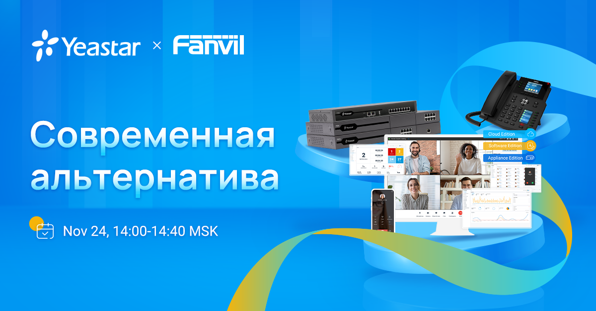 Вам нужна новая интеграция UC по принципу "подключи и работай"? Вот он - шанс! Yeastar и Fanvil расширяют возможности автоматического обеспечения АТС и IP-телефонов. Это интеграционное решение обеспечивает самый простой и бесшовный опыт звонков. Мы рады пригласить вас принять участие в совместном вебинаре ведущего поставщика услуг UC, Yeastar, и ведущего поставщика IP-телефонов, Fanvil. Присоединяйтесь к нам 24 ноября в 14:00 по МСК, чтобы узнать, как работает это интеграционное решение и какие бизнес-сценарии применимы. Узнать больше Повестка дня Решения Yeastar: Решения Fanvil: Вопросы и ответы Призы для победителей вопросов 🎁Главный приз тому, кто первым ответит на вопросы: 24 ноября | 14:00-15:00 MSK Забронировать место