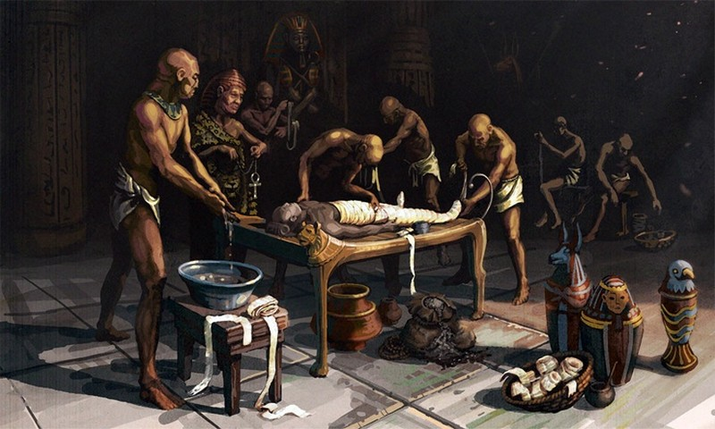 Мумификация - это особый процесс при котором тело человека или животного не разлагается. Подобное могло произойти как естественным путем, так и намеренно. Мумификации присутствовала и в других народах, однако она обычно ассоциируется с Древним Египтом. Для египтян было важно сохранить тело, так как они верили в жизнь после смерти. Поэтому они создали эффективные способы для сохранения тела, благодаря которым мумии сохранились до наших дней. Согласно записям древнегреческого историка Геродота, у египтян было три способа мумификации. Их отличие заключалось в качестве. Качество погребения зависело от материального положения семьи усопшего. 1.Процесс мумификации для низшего класса. К вечной жизни стремились не только знатные люди. Простой народ так же надеялся на жизнь после смерти. Естественно, только богатые люди могли быть захоронены по всем правилам, но это не мешало людям из низшего класса строить самодельные семейные гробницы. Этапы мумификации тела : Сперва в брюшную полость влива