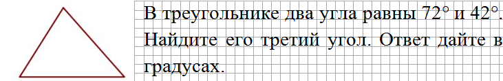 Здравствуйте, уважаемые читатели. В этой статье рассмотрим задачи по геометрии за 7 класс. Задачи на применение теоремы о сумме углов треугольника. Они встречаются в 15 задании ОГЭ по математике. Вспомним теорему о сумме углов треугольника: Сумма углов в треугольнике равна 180 градусам. Задача №1 Решение Сумма всех углов в треугольнике равна 180 градусам. Нам известны два угла в треугольнике. Они равны 72 и 42 градуса. Значит, третий угол равен: Ответ 66 Задача №2 Решение Отметив известный угол на чертеже. Необходимо найти внешний угол треугольника, который обозначен красным цветом. Внешний угол треугольника - называется угол, который смежный с каким-нибудь внутренним углом этого треугольника. Свойство смежных углов: Смежный угол треугольника равен 180 градусам. Рядом с чертежом треугольника сделаем смежные углы. Теперь найдем угол, смежный с углом в 115 градусов. Ответ 65 Задача №3 Решение В треугольнике АВС АВ=ВС, т.е. две стороны равны. Значит треугольник равнобедренный. Тре