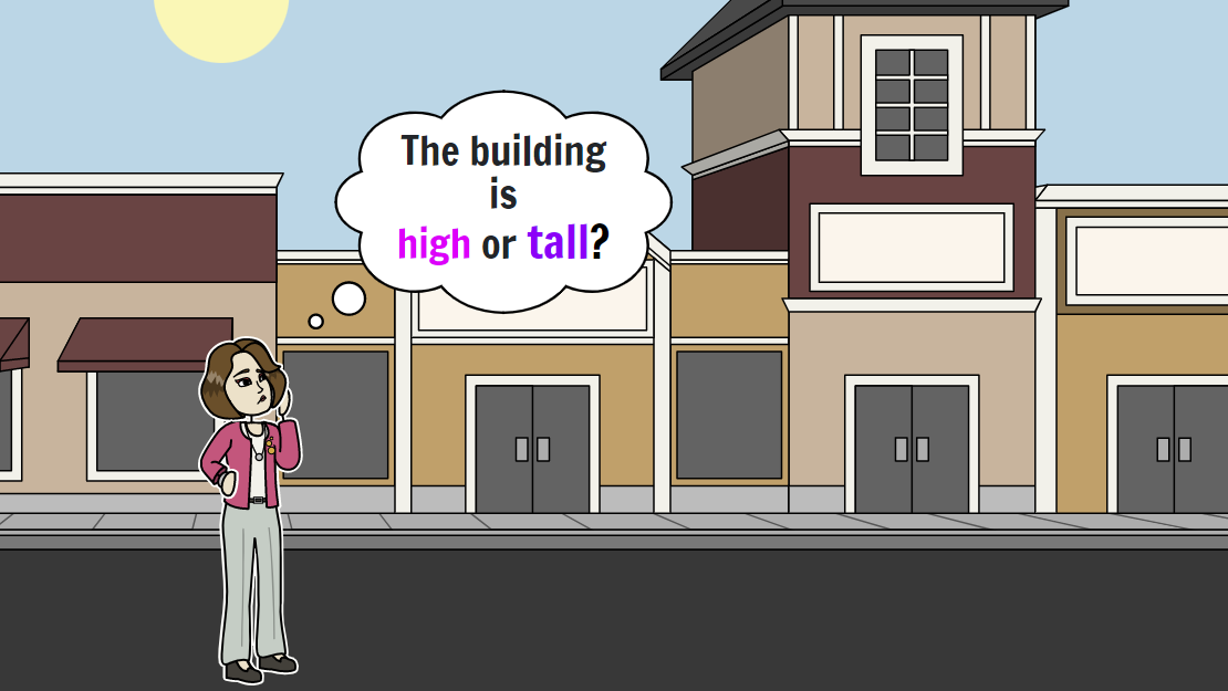 Прилагательные tall и high могут запутать. Так что давайте разбираться в разнице между ними и как использовать эти слова. Начнём с небольшого текста. My office is located on the corner of Madison Avenue and 40th Street in New York City. The building is not that tall compared to the famous landmarks like the Empire State Building or the Chrysler Building. Мой офис расположен на углу Мэдисон-авеню и 40-й улицы в Нью-Йорке. Здание не такое высокое по сравнению с такими известными достопримечательностями, как Эмпайр-стейт-билдинг или Крайслер-билдинг. Those buildings are really tall, but my building is old like they are, so it has high ceilings, and high ceilings always make the spacing wide and open, especially for tall people. Эти здания очень высокие, но моё здание такое же старое, как и эти, поэтому у него высокие потолки, а высокие потолки всегда делают пространство широким и открытым, особенно для высоких людей. Давайте разберём, что и когда используем. Обычно слово high используетс