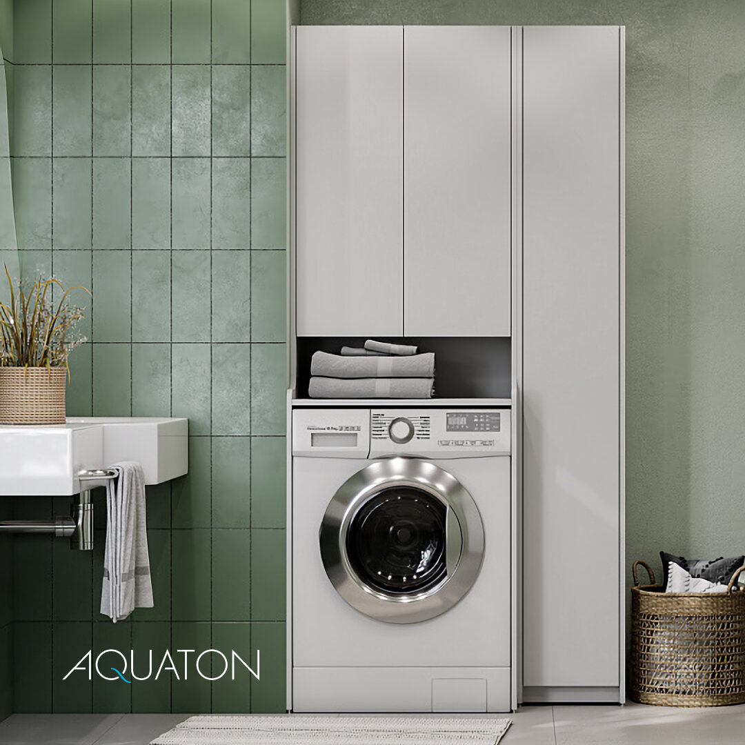 🔆Конструкция тумб под раковину разработана таким образом, чтобы под столешницей не только помещались выдвижные ящики, но и идеально вставала стиральная машина. Благодаря этому вы сможете совместить домашнюю мини-прачечную и функциональную зону для хранения всего, что сопутствует стирке. Высокий шкаф в коллекции тоже есть: он подойдет тем, кто хочет рационально использовать пространство над стиральной машиной.