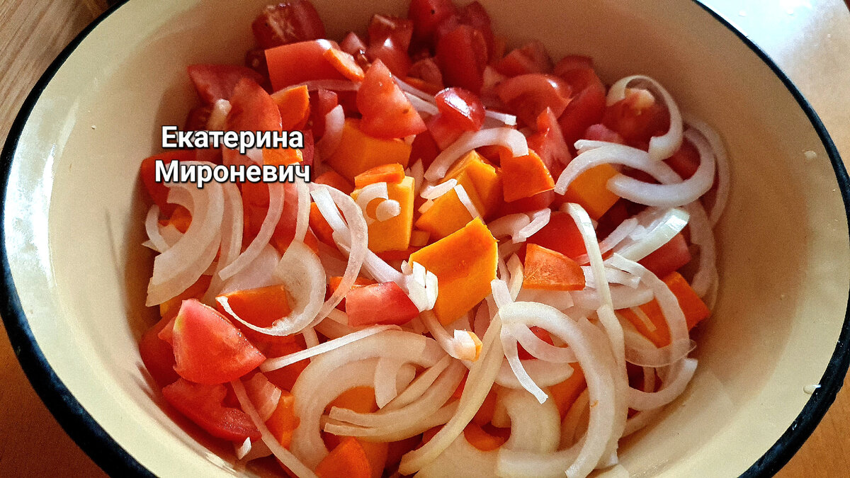 Друзья, всем привет! С вами Екатерина Мироневич и канал " Вкусные Рецепты с Екатериной" На нашем столе "Царица осени"- яркая и сочная тыква! Купить свежую тыкву можно круглый год, в т.ч. зимой и весной, т.к. хранится она может, вплоть, до нового урожая. И, поэтому, это отличный продукт для Великого поста, который бывает весной. Готовлю тыкву, запеченную с пряными специями и овощами. Кроме того, что это блюдо очень вкусное, оно еще и очень полезное. Прекрасное блюдо в пост! Готовлю его часто, как отдельное блюдо в пост, а также не в пост, как гарнир к любому мясу или рыбе. Кроме тыквы, для этого блюда понадобятся помидоры, лук, морковь и чеснок, а также соль, специи и пряные травы. Часть чеснока можно сразу добавить, нарезав его пластинками, а остальной чеснок можно добавить уже в готовое блюдо! Сверху, также кисточкой, можно еще, при желании, смазать овощи растительным маслом, подсолить и посыпать ещё специями. Теперь осталось овощи запечь! Я, в этот раз решила испечь без фольги, н