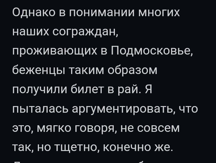 Сегодня на глаза попалась статья в которой автор высказывался в адрес тех, кто недоволен или считает несправедливым выдачу жилищных сертификатов и последующую материальную помощь беженцам с Украины. В общем вся статья сводилась к тому, как ей стыдно за такой вот плохой и завистливый народ и за людей с которыми она рядом живёт. Не смогла промолчать и не высказаться по этому поводу. Пока я читала статью, у меня возникло двоякое ощущение и парочка вопросов. Нет, конечно же я не против того, что бы помогать людям попавшим в беду и потерявшим все. Естественно помочь нужно, но это не значит, что нужно забывать про других своих, которые тоже живут в этой стране с самого рождения и нуждаются в помощи. И согласитесь таких людей довольно много и если честно я понимаю, почему в обществе, на этой почве возникают недовольства. И поэтому у меня тут же возникает вопрос к автору, кто собственно должен радоваться за тех людей которым предоставляется жилье, материальная помощь и разнообразные ль