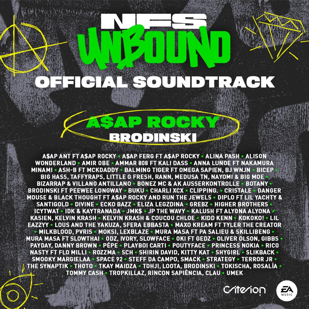 За пару недель до релиза Need for Speed Unbound издатель Electronic Arts и разработчик Criterion Games представили полный трек-лист новой гоночной игры, состоящий из 68 композиций таких исполнителей, как A$AP Rocky, Charli XCX, Moksi, Lexblaze, Pvris и многих других. Ознакомиться с ними вы можете через Spotify или Apple Music. К слову, американский рэпер A$AP Rocky не только предоставил свою музыку для гоночной игры, но и появится в ней в качестве персонажа. Если вы следите за Undound, то уже могли его увидеть в недавнем трейлере, посвященном режиму «Takeover Event». Релиз Need for Speed Unbound состоится 2 декабря на ПК (Steam, EGS и Origin), Xbox Series X/S и PlayStation 5. Ознакомиться с системными требованиями для запуска игры на ПК вы можете здесь.