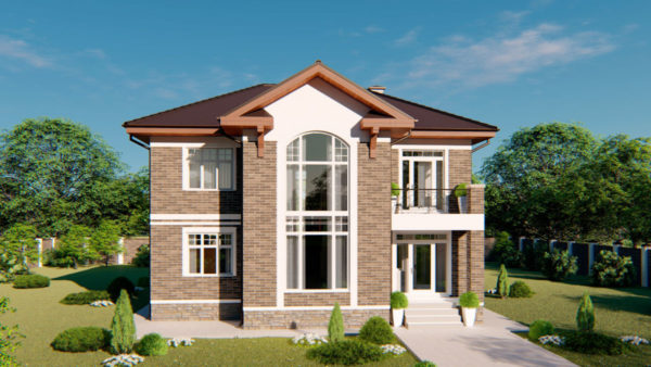 Проект двухэтажного дома, созданного для ценителей классики, комфорта и уюта. Это дом строгой, симметричной формы с классическим фронтоном и аккуратным балконом, опирающимся на лаконичные колонны. Фасад обшит облицовочным кирпичом благородного терракотового оттенка, а цоколь облицован диким камнем. Проект дома «Феодосия» >> Стоимость проекта дома ____________________________________________ Внутреннее пространство дома спроектировано для создания комфортных условий проживания семьи до 5 человек. На первом этаже расположены зоны общего пользования: просторная прихожая, в которой можно разместить вместительные шкафы для хранения сезонной и несезонной одежды и обуви. Прихожая ведет в холл, из которого можно попасть в котельную и гостиную со вторым светом. Большая кухня с выходом на приусадебный участок совмещена со столовой. Также на первом этаже предусмотрен санузел. Второй этаж отведен под жилые помещения: здесь размещены три спальни и второй санузел. Мастер-спальня оборудована индивиду