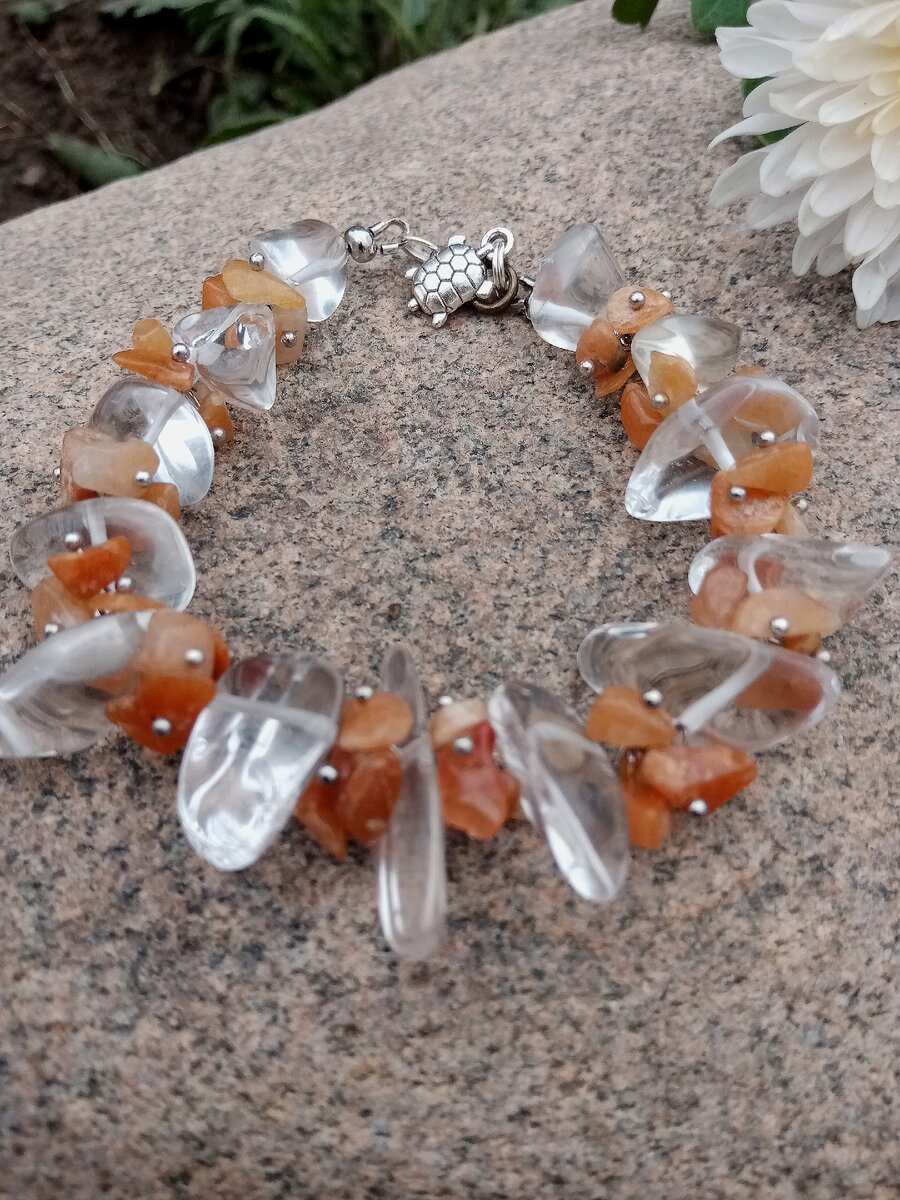 Браслет-талисман "Магия желаний" из Горного хрусталя и Сердолика с подвеской Черепашка.