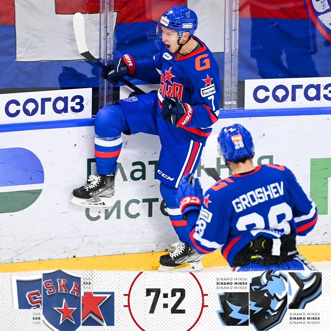 СКА забросил минскому «Динамо» 6 шайб за 9:10 мин, Никита Гусев набрал 4 очка (1+3), Дмитрий Яшкин отметился дублем! #КХЛ | #хоккей