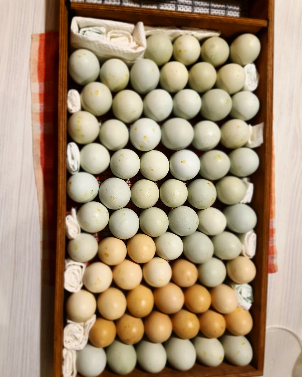Если вы везли инкубационные яйца издалека, то перед закладкой им нужно "отлежаться". Пусть отдохнут при комнатной температуре сутки. Если яйца планируете закладывать от своих кур, то заносите их с прохладного места и ждите пока они прогреются до комнатной температуры естественным путем, чтобы после закладки в инкубатор на поверхности яиц не было конденсата.