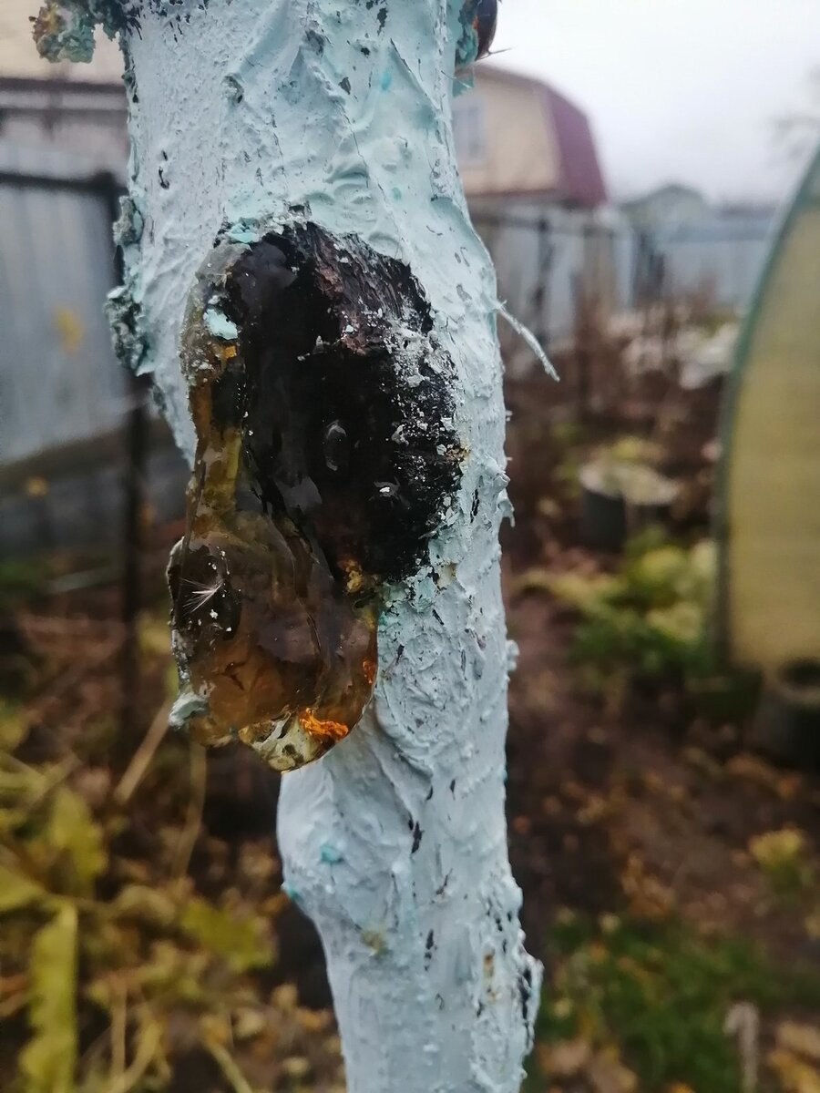 А может это и не смола вовсе? Пару дней назад увидела это. Муж на дежурстве был, я ездила на дачу одна, но за всеми хлопотами, связанными с кормлением, заметила, что на черешне что-то, похожее на смолу. А ещё на мёд гречишный похоже.