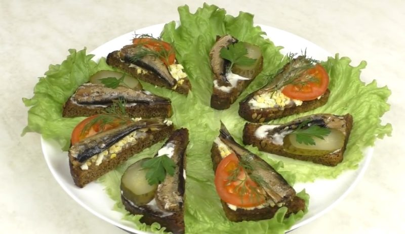 Бутерброды — это самая распространенная закуска к столу. В этой статье мы расскажем Вам, как сделать вкусные бутерброды со шпротой. Следуйте нашей инструкции и у Вас всё получится! Необходимые ингредиенты для приготовления бутербродов со шпротой Бутерброды со шпротой — 2 рецепта Шаг 1. Жарим гренки Со шпротами хорошо сочетаются гренки из ржанова хлеба. Разрезаем хлеб на треугольные кусочки, по диагонали. Добавляем немного масла в сковороду и обжариваем кусочки хлеба с двух сторон. Шаг 2. Готовим составляющие бутерброда Для соусной составляющей используем майонез. В майонез выдавливаем зубчик чеснока, затем хорошо перемешиваем соус. Следом натираем на крупной тёрке варёные яйца и разрезаем помидоры на полукруглые дольки. Шаг 3. Собираем первый вариант бутерброда Мажем на гренки из ржаного хлеба — майонезный соус с чесноком. Сверху выкладываем тёртые варёные яйца. Далее, на слой из тёртых яиц — кладём полукруглую дольку помидора, в уголок, а рядом — кладём шпроту. Украшаем бутерброды вет