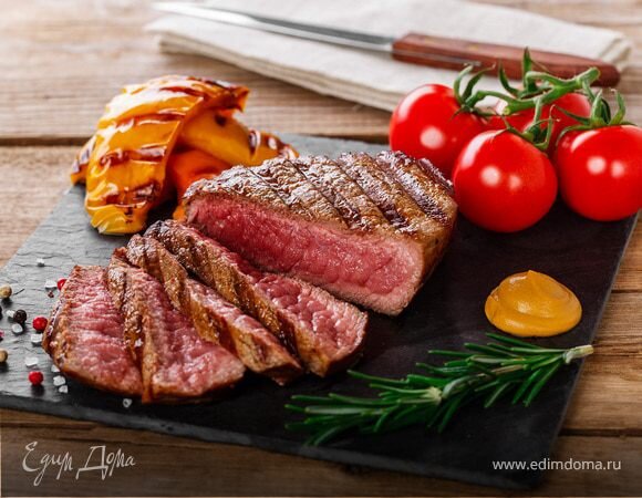 - Для данного стейка мы будем использовать отруб под названием «тонкий край» или «стриплоин», также идеально подойдет толстый край, стейк из костреца, стейк из лопатки, вырезка и вырезка из лопатки.