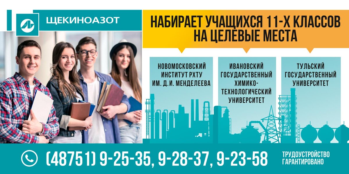 АО «Щекиноазот» предлагает обучение на целевых местах в вузах:
