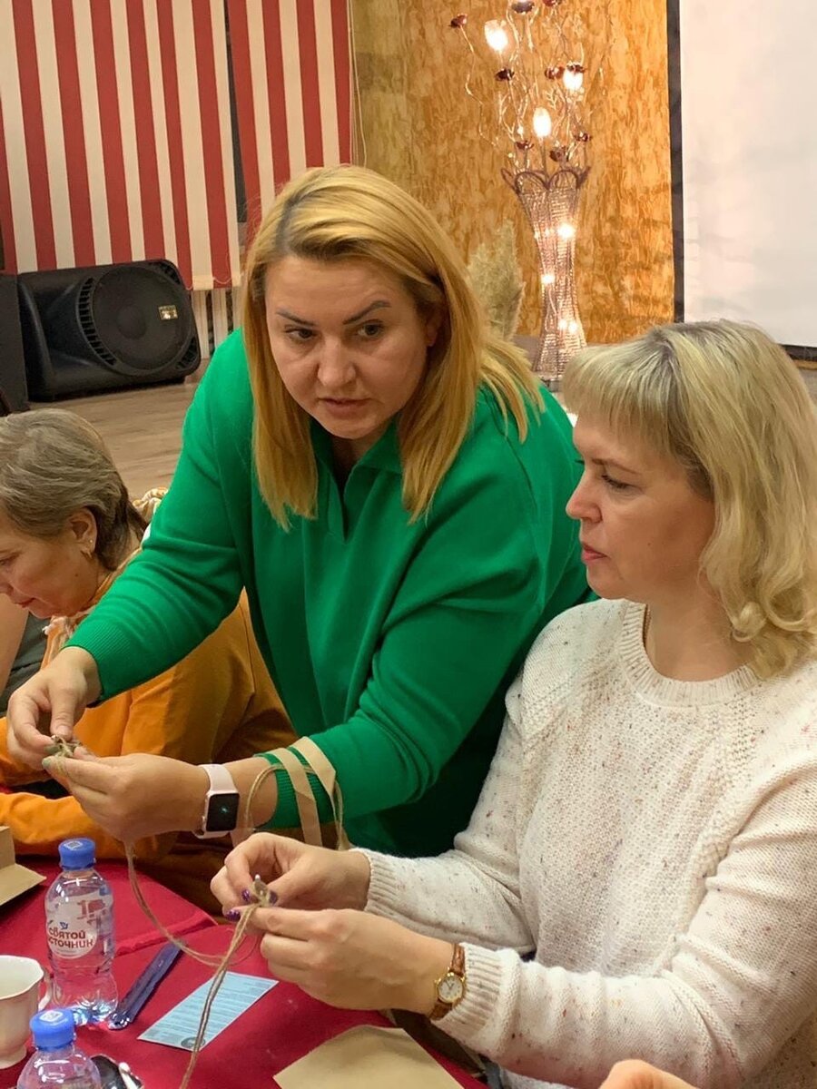 Затем слово предоставили мастеру Анне Архановой, профессионалу своего дела, которая предложила участникам мастер-класса изготовить корзинку из джута. Анна отметила: «сегодня на острие моды вещи, созданные и украшенные своими руками. Бесхитростные вещи, а как они привлекательны. Рукоделие обретает новую жи