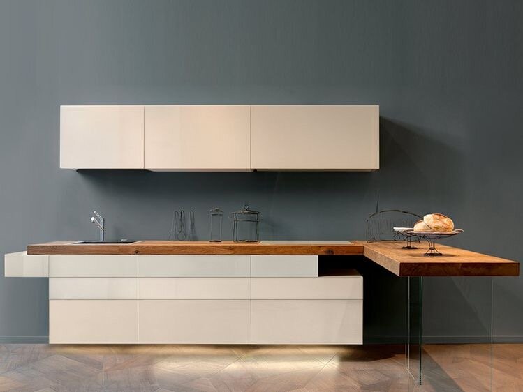 Подвесные кухни все чаще завоевывают сердца заказчиков. Конфигурация гарнитура отличается от привычного нам тем, что нижние фасады, как и верхние, навешиваются на стену, создавая эффект "парящей" мебели. У подвесной кухни отсутствует цоколь, а пустое пространство между ящиками и полом составляет 30-60 сантиметров, в зависимости от дизайна. Сегодня мы рассмотрим все особенности такого гарнитура.