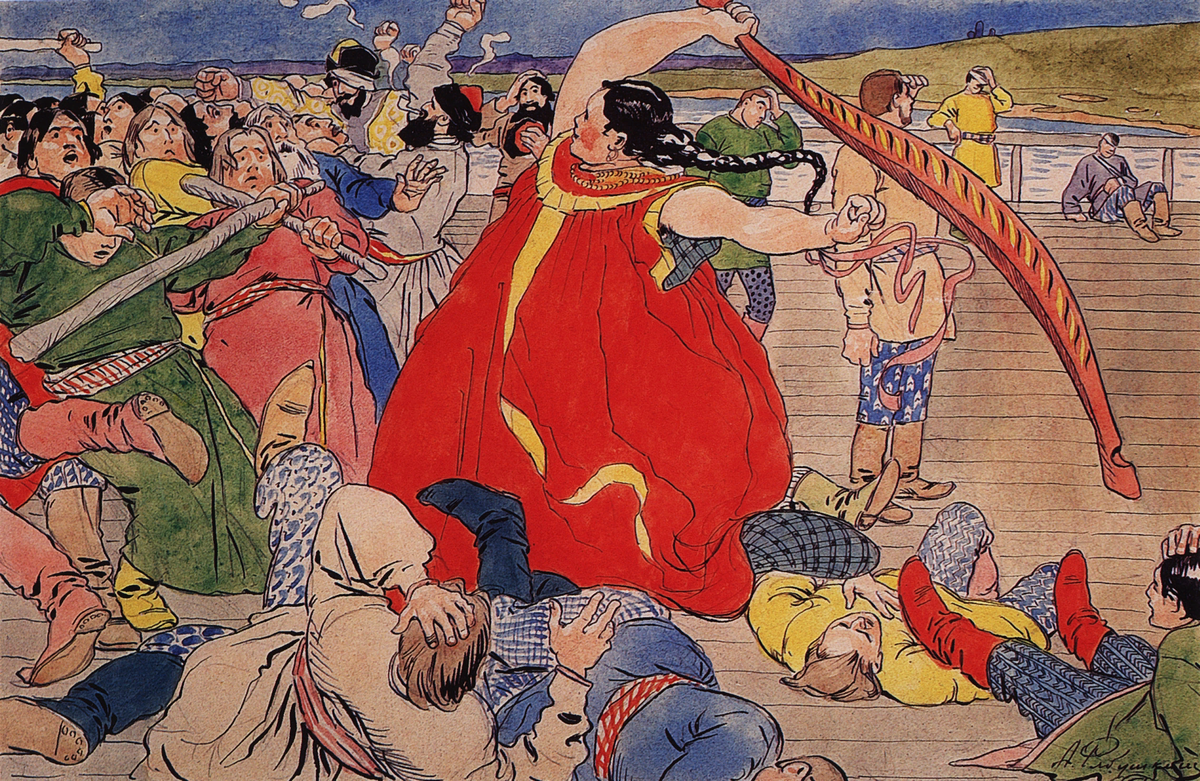 На днях я писала статью про размужичье. В общих чертах, так раньше звали женщин, которые "достигнув возраста, уже не внушающего нежности местным кавалерам, усваивают себе мужские привычки и наклонности". По словам современников были они "Тяжелы на руку. Какие они бабы, только звание одно. И работают, и дерутся здорово. Одна такая баба, поди, трех мужиков ограбить и от четвертого отбоярится. Вот в других местах точно что женский пол. А эти того и норовят тебе — в затылок... Бабы!.." Если вы пропустили эту статью, то вот ссылка на нее: В комментариях мне напомнили былину о богатыре Василие Буслаеве. Был там такой момент: И тут девушка-чернавушка,