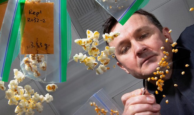 Многие любят побаловать себя попкорном. Это вкусно, но совсем не так питательно, как бы того хотелось. Однако ученым из Университета Небраски-Линкольна удалось решить эту проблему. Их попкорн содержит почти в два раза больше питательных веществ по сравнению с обычным. История этого открытия уходит в 1990-е годы, когда была создана кукуруза QPM с внедренным геном opaque-2. За счет этого содержание в ней лизина и триптофана, весьма важных для здоровья человека аминокислот, было существенно увеличено. Кукурузу QPM начали выращивать в ряде развивающихся стран, чтобы решить проблему голода. Недостатком нового сорта было только то, что его зерна были мягкими. Это делало их уязвимыми перед болезнями и вредителями. Затем, силами агрономов и селекционеров был выведен сорт, имеющий твердые стекловидные зерна. Ученые же, пытаясь модифицировать попкорн, применили тот же ген. В результате было получено растение, имеющие меловые зерна, не склонные к тому, чтобы лопаться (то есть непригодное для созд