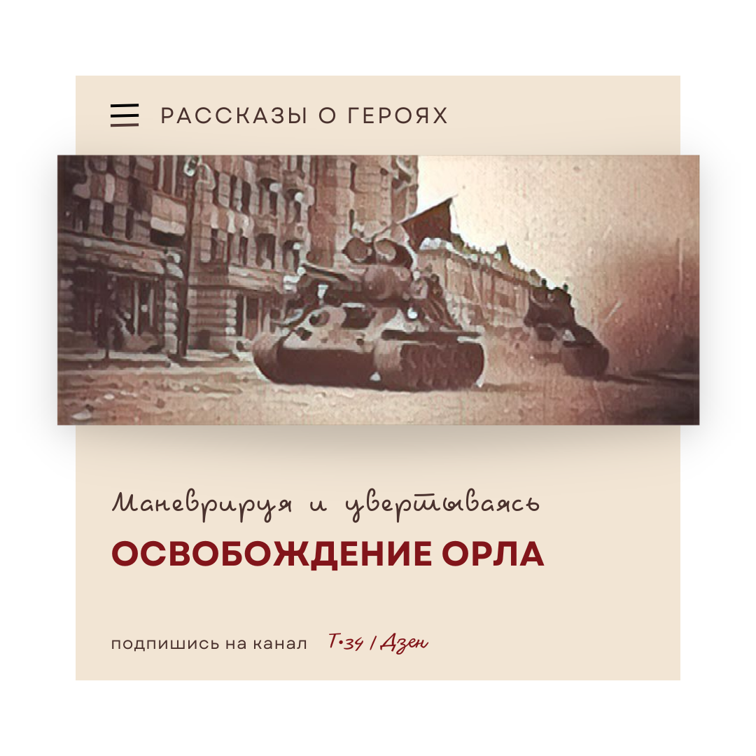 Танковый полк ворвался на окраину Орла. И хотя лейтенант Фролов был уже не в первом бою, вся обстановка вокруг складывалась необычная, раньше такого видеть и переживать не приходилось. Казалось, что противник был всюду. Куда бы не двигался танк, на пути были огневые точки врага, со всех сторон били противотанковые орудия. Броня гудела от рикошета снарядов, грохота осколков и пуль крупнокалиберных пулеметов. Попадания снарядов высекали искры, и порой казалось, что машина наскакивала на какие-то невидимые преграды. Стальная громада неслась вперед, подавляя огнем пушки и давя гусеницами все препятствия на пути. В приоткрытый люк, заглушая гул боя, донеслись слова, обращенные к населению: — Граждане города Орла! Красная Армия освобождает ваш город от немецко-фашистских захватчиков. Развернулось победоносное наступление наших войск на всем фронте! Пришел час расплаты с врагом. Враг будет разбит, победа будет за нами!.. Враг закрепился в городе основательно. Огневые точки располагались на ка