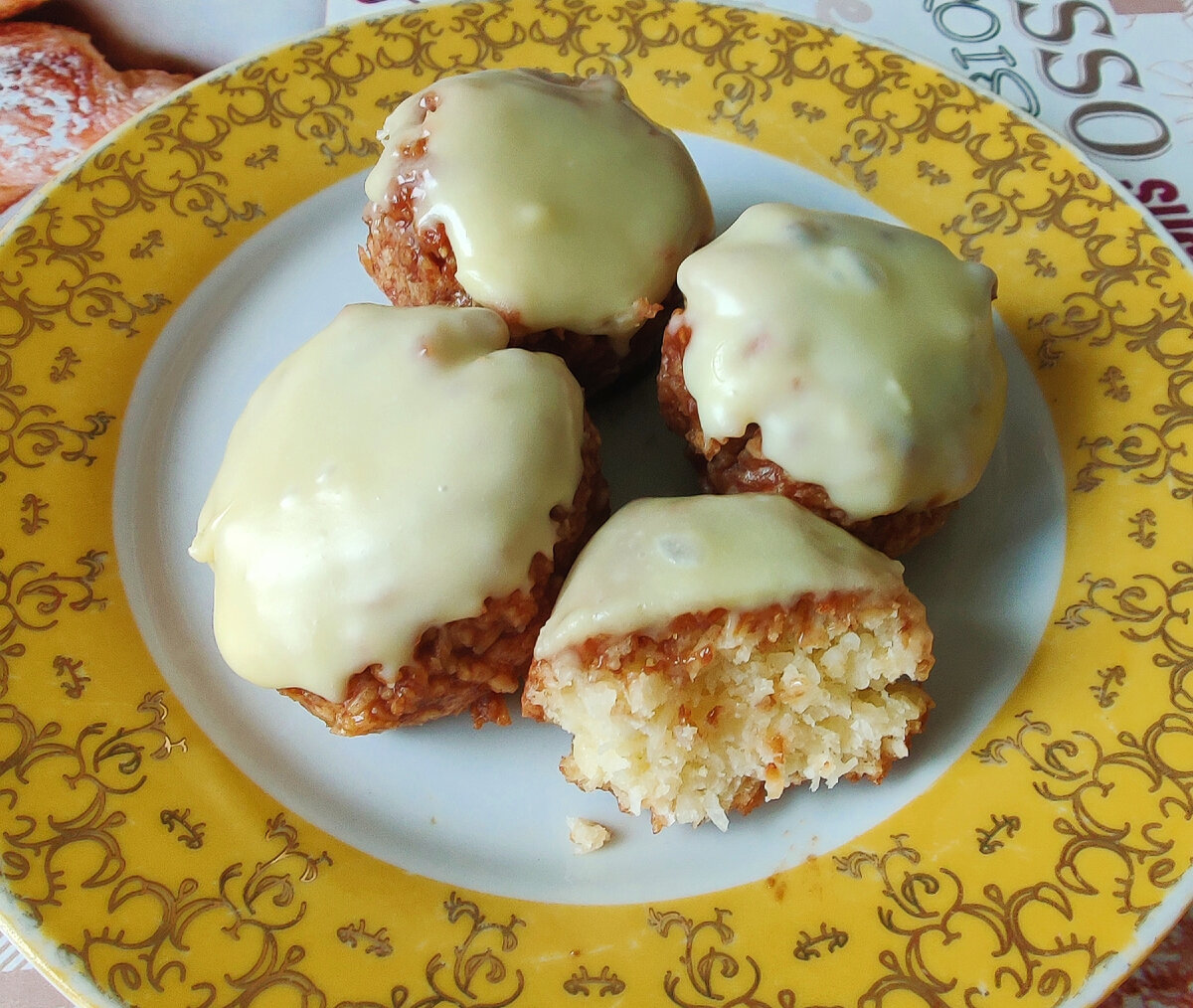 Печенье-конфеты, которые можно приготовить и в мультиварке, и в духовке. Вкусный десерт без муки, а если вы следите за фигурой, то сахар можно заменить эритритом. Для печенья Для глазури Яйца и сахар (или сах.зам) соединить в глубокой миске ( взбивать нет необходимости), добавить кокосовую стружку, хорошенько перемешать и оставить на 20 минут. Сахара можно добавить чуть меньше - десерт получается достаточно сладким. Если используете эритрит - ориентируйтесь на то, что обычно у него 60-70 % от сладости сахара (очень зависит от производителя). Я готовила в мультиварке - дно чаши предварительно смазав сливочным маслом. Если готовите в духовке - лучше всего использовать специальный силиконовый коврик или бумагу для выпечки ( тогда масло не понадобится). Спустя 20 минут начинаем готовить кокосанки. Формируем небольшие шарики величиной с грецкий орех, при этом хорошо "отжимая" наше тесто руками. Укладываем заготовки в мультиварку (духовку) и готовим на режиме выпечка 30 минут. Я перевор