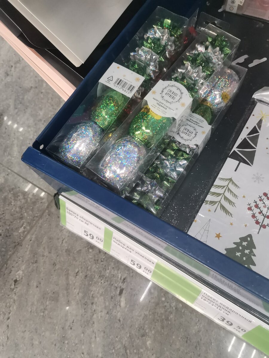 И я люблю, когда они красиво упакованы. Стараюсь самостоятельно придумать что-то интересное, дабы получатель подарка уже при получении видел старания. В магазине для этого предлагается целый набор для упаковки подарков, причем стоит он скромные 59 рублей, а содержит и бумагу, и украшения.