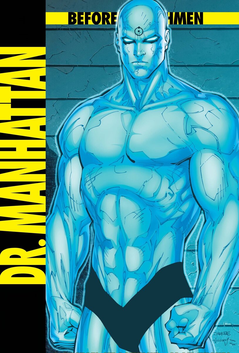 Он предстал высоким голым человеком с синей кожей и белыми глазами без зрачков. В этот день на свет появилось новое существо, позже названное Доктором Манхэттеном, в честь законченного проекта "Манхэттен" (кодовое название программы США по разработке ядерного оружия).