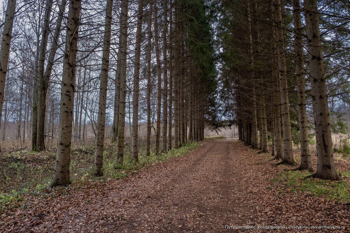 К этой усадьбе совершенно невозможно попасть случайно. Просёлочная дорога петляет по деревням и лесам, и вот за поворотом можно рассмотреть аллею, которая уходит куда-то вдаль.
