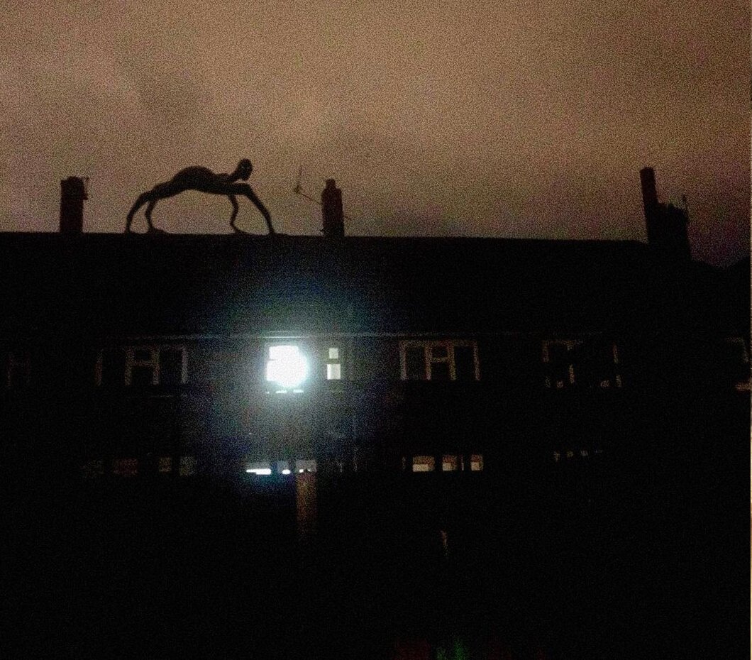 Рабочий день прошёл, как обычно, разве что задержаться пришлось на пару часов, по этому домой я ехал уже поздним вечером. Доехав до нашего двора, я припарковал машину и уже направился домой, как вдруг заметил на крыше противоположного здания какое-то движение. Задрав голову вверх я увидел, как по крыше ходит странное существо.