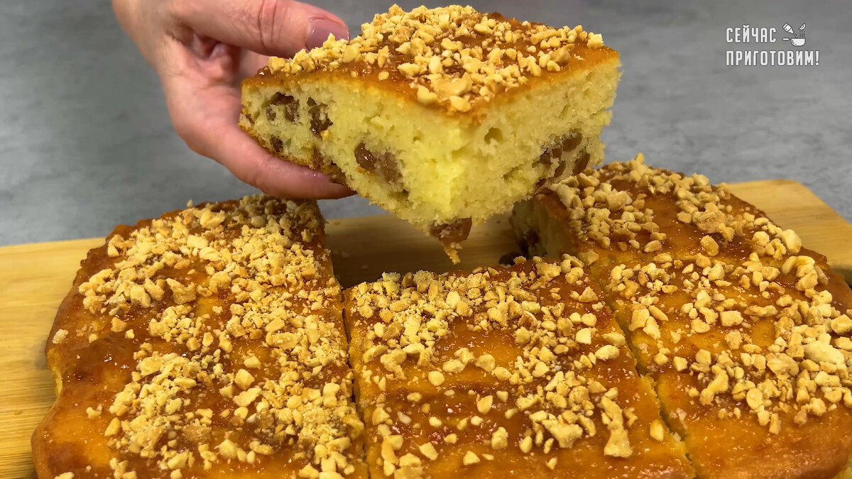 Пирог с вареньем - один из самых простых рецептов. Легкий быстрый десерт, готовящийся из продуктов, которые есть на любой кухне. Как готовить: 2 яйца разбиваем в миску, добавляем щепотку соли, 150 грамм сахара и взбиваем до пышности яиц. Добавляем чайную ложку сухой цедры апельсина или цедру одного апельсина. Добавляем 130 мл растительного масла, 300 мл теплого кефира и перемешиваем. Добавляем 270 г муки, 10 г разрыхлителя и замешиваем тесто. Вмешиваем 100 г изюма. В форму на бумагу для выпечки перекладываем тесто. И отправляем заранее разогретую духовку до 180°С на 40 минут. Даем пирогу немного остыть и вынимаем из формы. Сверху смазываем абрикосовым джемом. Сверху посыпаем соленым арахисом (очень вкусно). Разрезаем порционно и можно подавать к столу. Более подробное приготовление смотрите в моем видео: Приятного аппетита! Ингредиенты: 👌 Как Вам такой рецепт? Жду Вас в комментариях! Подписывайтесь на мой канал "Сейчас Приготовим" чтобы не пропустить новые рецепты. ▶️ Наше сообществ