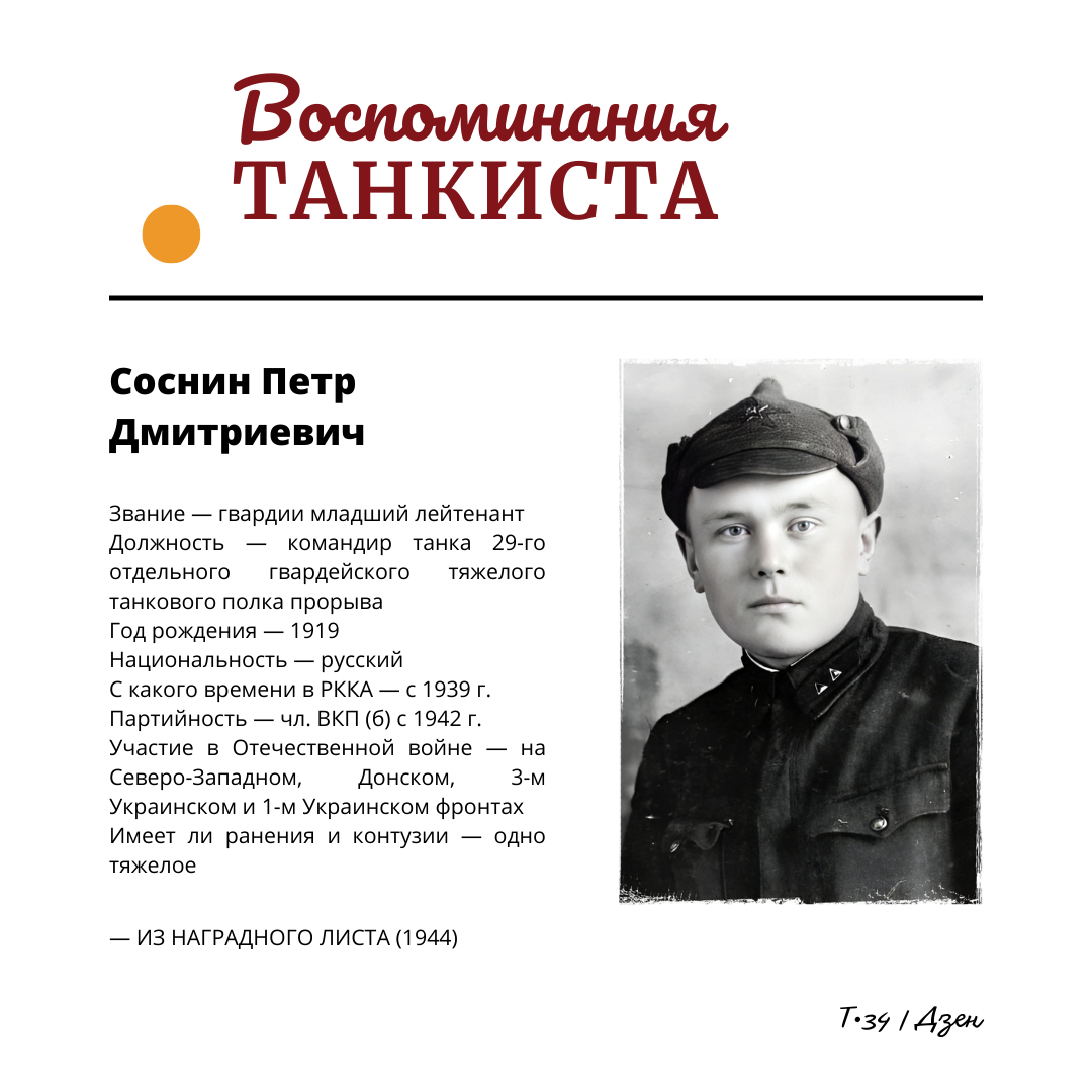 Когда на нашу социалистическую Родину напал враг, мне пришлось пройти вместе с миллионами советских людей трудную солдатскую дорогу, довелось видеть смерть, разрушения и прочие ужасы войны. Мой труд скромный: я был танкистом, механиком-водителем и командиром советских танков, участвовал в боях под Москвой, на Украине, в Польше.