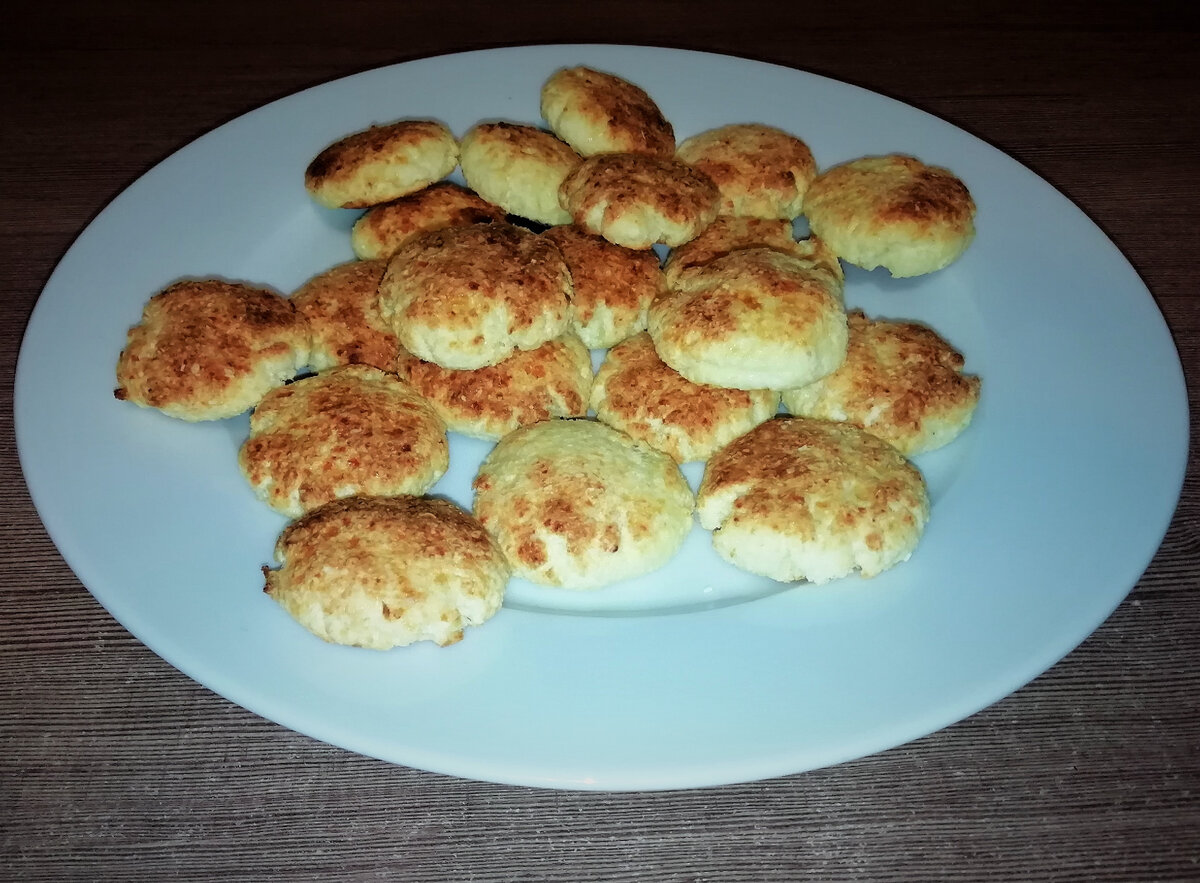 Мои эксперименты с полезными сладостями продолжаются... Вчера вечером так захотелось горячего чаю с чем-нибудь вкусненьким. Решила не мучать себя жесткими ограничениями, а приготовить что-то и вкусное, 🍪🍪🍪относительно безвредное, а еще лучше полезное. Вот, ч то у меня получилось: Конкретного рецепта у меня не было, искать в интернете ничего не хотелось, решила сделать из того, что имеется у меня в холодильнике. В итоге я просто взяла пачку творога 5%, добавила одно яйцо, перемешала, насыпала немного кокосовой стружки. Для сладости я добавила несколько капель стевии (природного подсластителя), когда я раньше готовила творожную запеканку из одной пачки творога, то обычно клала 1 столовую ложку сахара без горки. Я думаю, что для печенья тоже можно взять 1 столовую ложку сахара, если вдруг вы не используете сахарозаменитель. Кокосовой стружки у меня ушло примерно 2 столовые ложки, зависит от влажности творога и размера яйца. Масса должна быть густой, но пластичной, чтобы она не прилипал