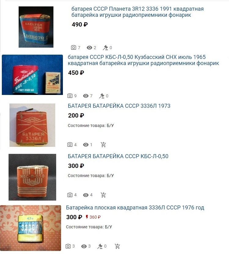 Сегодня чуть челюсть не уронил, когда на на экране ноутбука увидел рекламу "Батарейки СССР-лучшая цена! " В советское время часто в магазинах не было в продаже батареек, а тут уже 30 лет как нет страны, но батарейки всё не могут распродать. Конечно же, рука сама потянулась нажать на рекламу. Оказывается, предприимчивые люди вовремя убрали имеющиеся батарейки в дальний угол шкафа и теперь успешно выставили на продажу. Причем продается весь ассортимент выпускавшихся в СССР батареек, включая даже специальные. По маркам и годам выпуска можно изучать историю. Пожалуй начнем с самых любимых в детстве батареек- с "плоских": Нашелся даже продавец, который предоставляет гарантию на батарейку. Причем батарейку изготовили 39 лет назад. Коммерсанты умеют продавать даже воздух, что уж говорить об этикетках за 100 рублей Есть даже своеобразные "оптовики", сразу продающие мелким оптом Вот сейчас думаю: сколько же я этих плоских батареек извел я за свою жизнь то? Фонарики, игрушки, радиоприемники, п