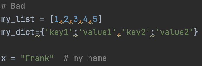 Допустим, что вы используете Pycharm. Если вы начнете писать код, который не соответствует рекомендациям РЕР8, то вы увидите эти противные подчеркивания как на картинке ниже.