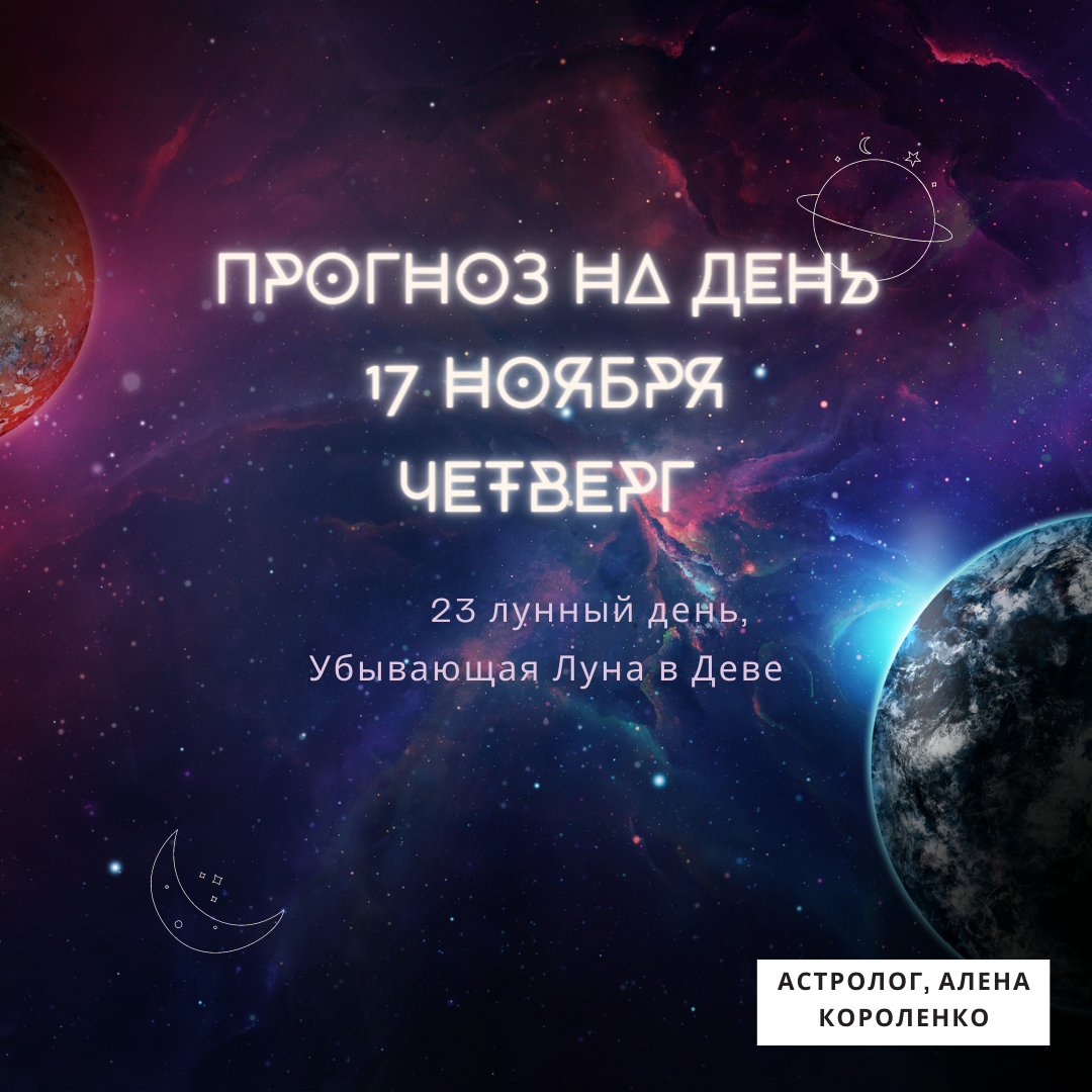 🌏 17 ноября, четверг 🌛 23 лунный день Убывающая Луна в Деве Луна в Деве располагает нас на рутинные дела. Самое время заняться полезными, обычными домашними делами, уборкой, наведением порядка. Знак критиканов и занудства, хочется конкретики и четкости, но напряженный аспект с Меркурием дает в этом разбалансировку: спутанность мыслей, сложное восприятие информации, шансы договориться не велики, тем самым переговоры и важные встречи лучше отложить. Не самое лучшее время для крупного шопинга, под внутренней дисгармонии, отсутствие внутреннего баланса особенно девушки могут потратить лишнего, ту сумму, которую и не планировали. Задачи дробим на мелкие. Занимаемся вопросами здоровья, сдаём медицинские анализы, на убывающей Луне самое время делать уколы и сдавать анализы (быстрее происходит восстановление). Уборка. Ремонтные работы. Занимаемся домашними питомцами. Начало диет, детоксов. Удачной недели ❤️
