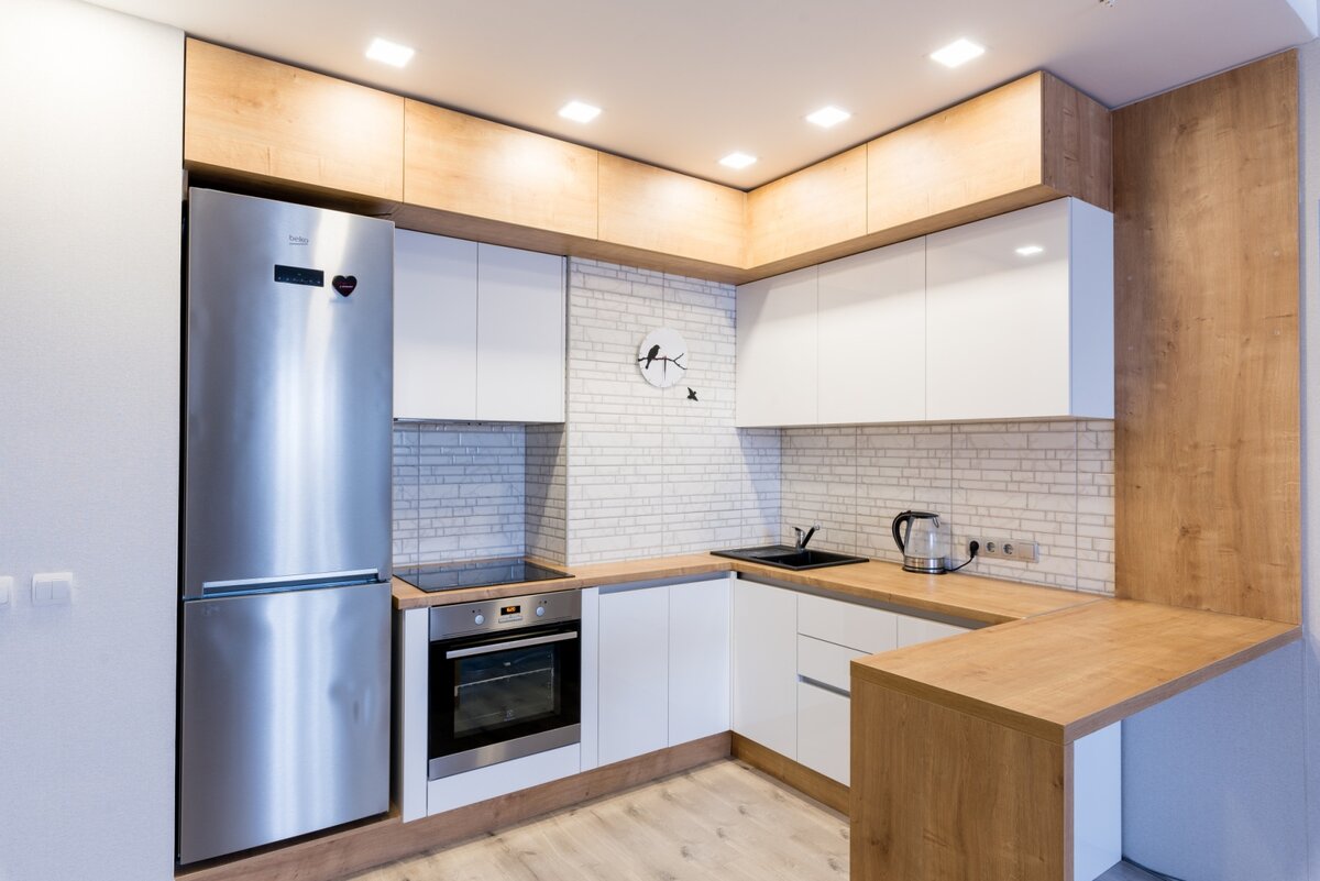 Одно из главных достоинств такого дизайнерского решения – это элегантный и красивый внешний вид всей кухни после установки.