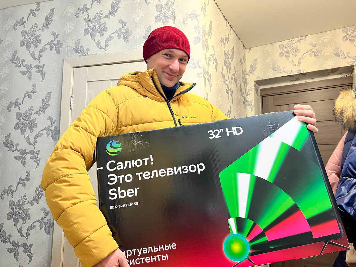 Диана насмешила! Прихожу я вечером домой, а в руках телевизор. Да не простой, а с необычным названием – Sber. Что общего у банка с телевидением? – На, жена, телевизор от Сбера. – А банкомат внутри есть?, – первым делом поинтересовалась супруга. Вот женщины все такие, чуть что, сразу деньги подавай :)) Телевизор Sber – это действительно продукт Сбера. Задумывался он как умное устройство с самыми нужными функциями по доступной цене. Наш экземпляр среднего размера – с диагональю 32 дюйма. Такой идеально впишется в детскую комнату или на кухню. Для гостиной есть диагональ побольше – 43 дюйма. Цена для телевизора и правда очень приятная – 12 490 и 17 990 рублей, в зависимости от размера. Причём это не просто "ящик" для просмотра телеканалов, а многофункциональный девайс со смарт-ТВ. В тот же вечер мы сели разбираться, что к чему. И банкомат искать, конечно же :)) Тимофей оживился – он давно хотел телевизор в свою комнату. Запускаем устройство и видим приветствие: – Салют ТВ. Что это