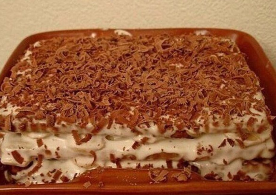 Убрать десерт в холодильник на час. Если есть возможность и терпение, то подержать его в холодильнике подольше, чтобы тортик пропитался.
