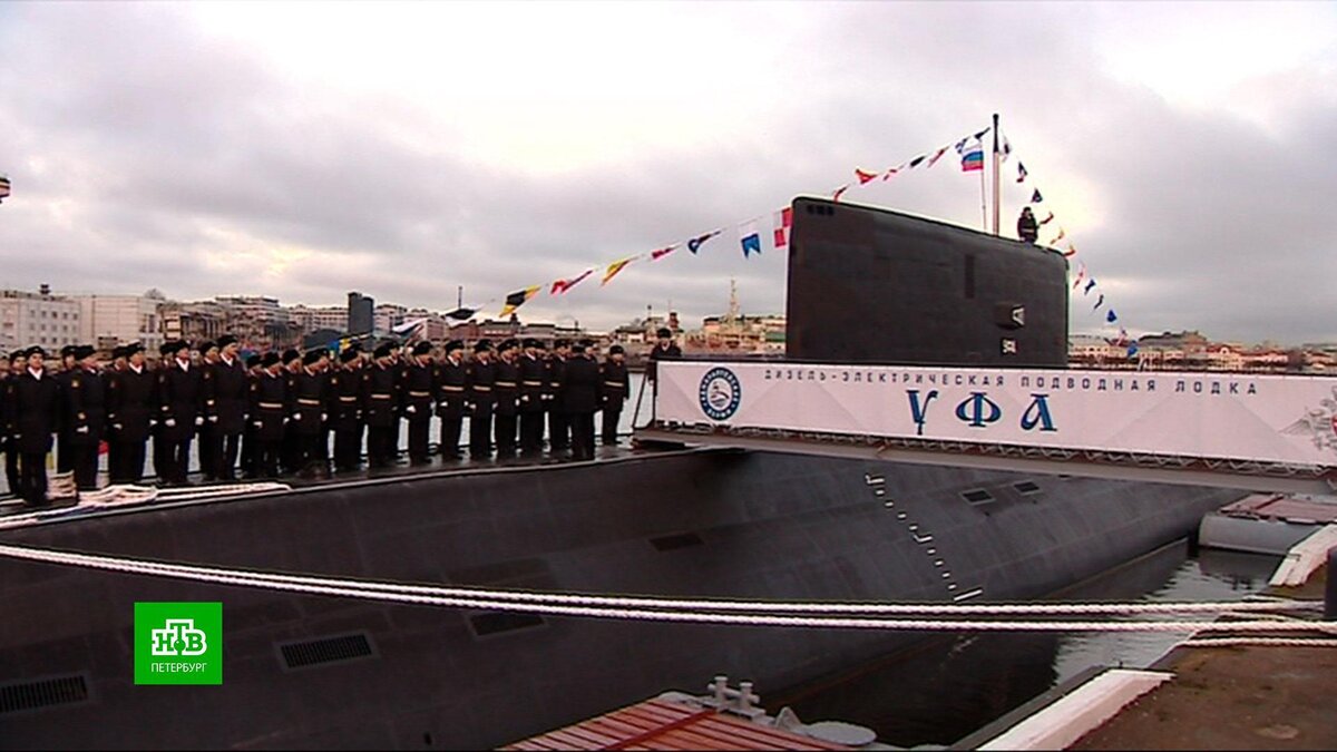 [ Смотреть видео на сайте НТВ ] В Петербурге в состав российского военно-морского флота сегодня ввели дизель-электрическую подводную лодку «Уфа». На «Адмиралтейских верфях», предприятии, где построили лодку, провели обязательный торжественный ритуал поднятия Андреевского флага на борту субмарины. «Уфа» — четвертая подводная лодка, построенная «Адмиралтейскими верфями» для Тихоокеанского флота. Всего для дальневосточного морского рубежа нашей страны петербургские корабелы построят шесть субмарин модифицированного проекта «Варшавянка». По сравнению с предыдущими субмаринами этого типа «Уфа» имеет более высокую боевую эффективность. [ Смотреть видео на сайте НТВ ]