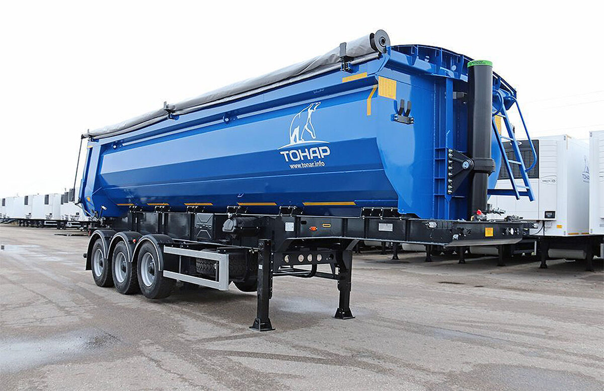Импортные осевые и тормозные агрегаты в прицепной технике «Тонар» заменяются российскими. Облегченный полуприцеп SL4-30 Четырехосный полуприцеп с односкатной ошиновкой и задней разгрузкой оборудован пневмоподвеской и полукруглым кузовом объемом 2230 м3, выполненным из высокопрочных сталей Hardox и Domex. Как отмечают представители завода, пока производимая заводом техника оснащается гидроцилиндрами Penta, но скоро их заменят цилиндры российского и китайского производства. При этом все осевые агрегаты и тормозные механизмы – собственного производства. Масса перевозимого SL4-30 груза составляет 28 550 кг, снаряженного полуприцепа – не более 8500 кг. Механическое опорное устройство полуприцепа с двухступенчатым, двухскоростным редуктором, максимальный ход составляет 450 мм. Сварная рама полуприцепа выполнена из лонжеронов двутаврового сечения, соединенных поперечинами. В передней части рамы размещена плита наката со шкворнем. Расстояние от шкворня до ближайшей части механизма опорного