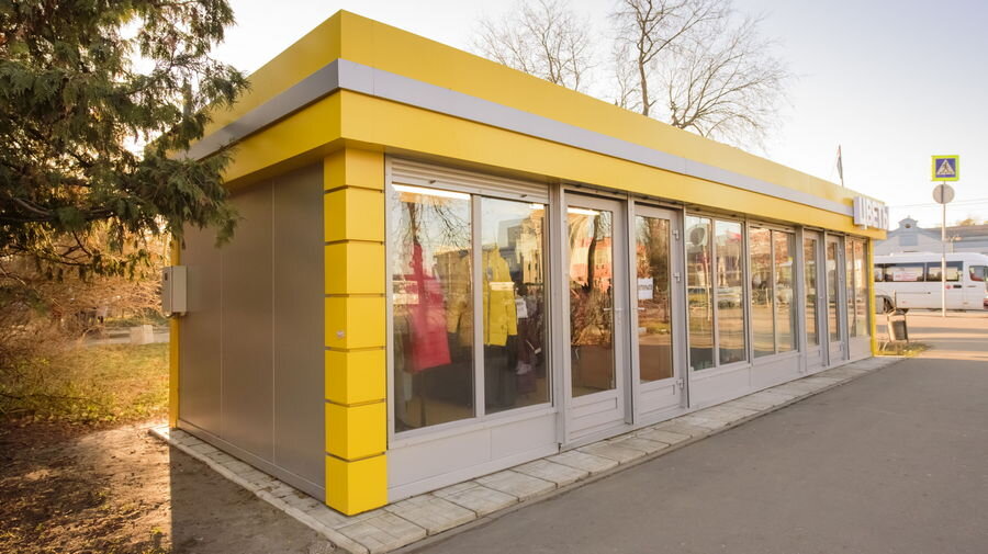 Для небольших магазинчиков можно использовать сборные металлические конструкции или панельный вариант сооружения. Также необходимо завести в павильон все коммуникации.