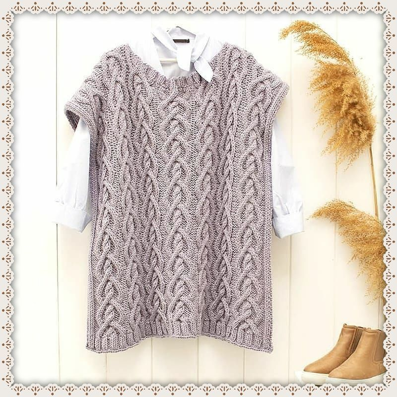 Всем привет! Вы на канале "Зефирка" - здесь Вас ждут идеи для вашего крючка или спиц, хорошее настроение и мои творения! Всем добра! Нам понадобится: пряжа Alize Lanagold plus (49% шерсть - 51% акрил, 100 гр * 140 м) 9 мотков; спицы № 8. ТЕХНИКИ ВЯЗАНИЯ: лицевые и изнаночные петли, смещение петель, узор "коса" Набрать 130 петель и вязать 7 рядов, чередуя: 2 изнаночные, 2 лицевые. Затем по 6 петель с обоих краев продолжить вязать, чередуя 2 изнаночные и 2 лицевые, а остальные 118 петель вязать по схеме (листайте) С высоты 62 см продолжить вязать: 6 петель - чередуя 2 изнаночные и 2 лицевые, 34 петли - по схеме, 50 петель - чередуя 2 изнаночные и 2 лицевые, 34 петли - по схеме, 6 петель - чередуя 2 изнаночные и 2 лицевые. Связать таким образом 6 рядов, затем закрыть 50 центральных петель. В следующем ряду над закрытыми 50 петлями снова набрать 50 петель и продолжить вязать: 6 петель - чередуя 2 изнаночные и 2 лицевые, 34 петли - по схеме, 50 петель - чередуя 2 изнаночные и 2 лицевые, 3