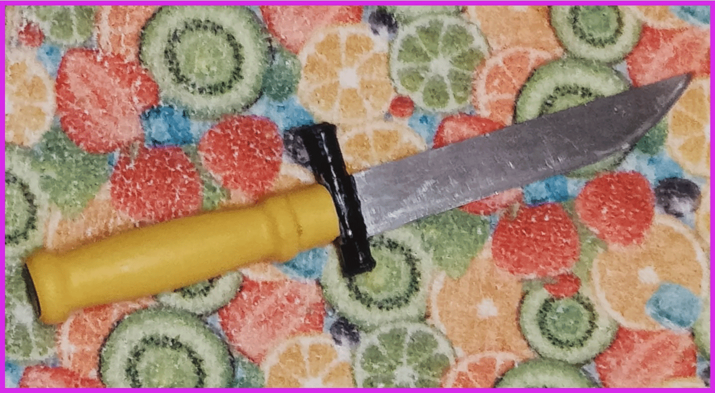 Появление новых технологических материалов помогает без особо труда оформить внешний вид и улучшить функциональность старого инструментария. Пример такой технолизации показан на примере оформления еще одного простого ножа. Термоусадочная трубка позволила изолировать деревянную ручку ножа, а в качестве ограничителя ножа использован отрезок трубки от анкерного болта. С торцов трубки вставлены подходящие по ее диаметру люверсы, а затем изолированы там термоусадочной трубкой. Трубка в сочетании с проволокой внутри, закрепленной скруткой на лезвии, и эпоксидного клея позволила жестко зафиксировать расшатавшееся лезвие ножа. В качестве каркаса ножен использована упругая упаковочная лента.