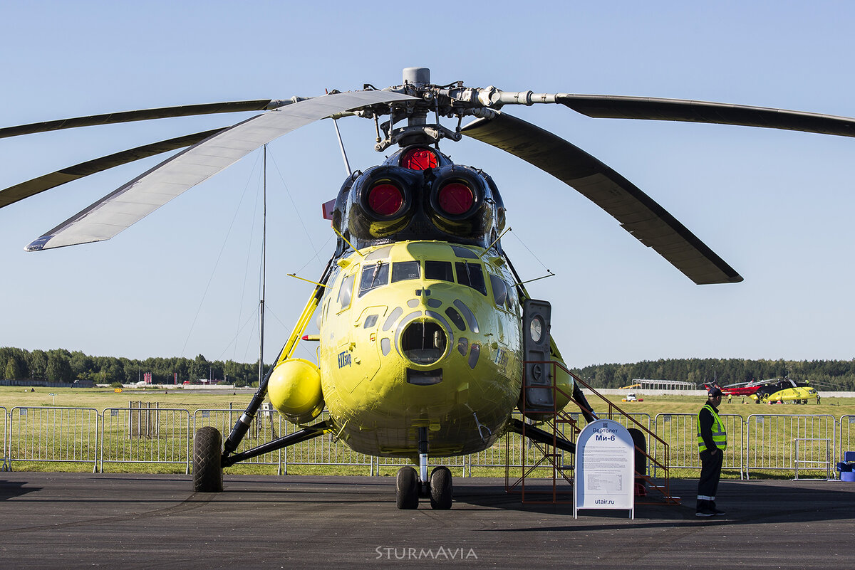 Ми-6 тяжелый многоцелевой советский вертолет. - Первый серийный вертолет, на котором установлены два турбовальных двигателя со свободной турбиной. -Одной из причин создания данного вертолета стали ракетные комплексы «Луна», которое в конце 50-х годов поступили на вооружение в СССР, для перевозки которых возникла необходимость в тяжелом вертолете с большой грузоподъемностью. - Впервые вертолет подняли в воздух 5.06.1957 г. - На Ми-6 впервые в СССР предусматривалась перевозка груза с внешней стороны фюзеляжа. - Ми-8 установил 16 мировых рекордов Серийно Ми-6 производился на вертолетном заводе в г. Ростов с 1959 г. Также был налажен выпуск в Москве на заводе имени Хруничева. За время производстве до 1980 г. выпустили 860 вертолетов в гражданских и военных модификациях. Эксплуатировалась эта машина до 2002 года. Модификации: транспортно-десантный, «Летающий кран», санитарный, пассажирский, модификация Ми-6ПС предназначена для поиска и эвакуации экипажей космических кораблей,